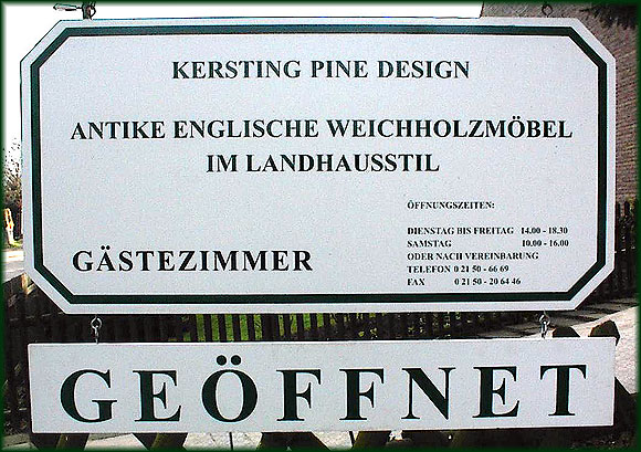 Kersting Pine DesignAm Oberen Feld 6940668 Meerbusch-NierstTelefon: 02150-6669Fax: 02150-20 64 46E-mail: info@kersting-pine-design.de
